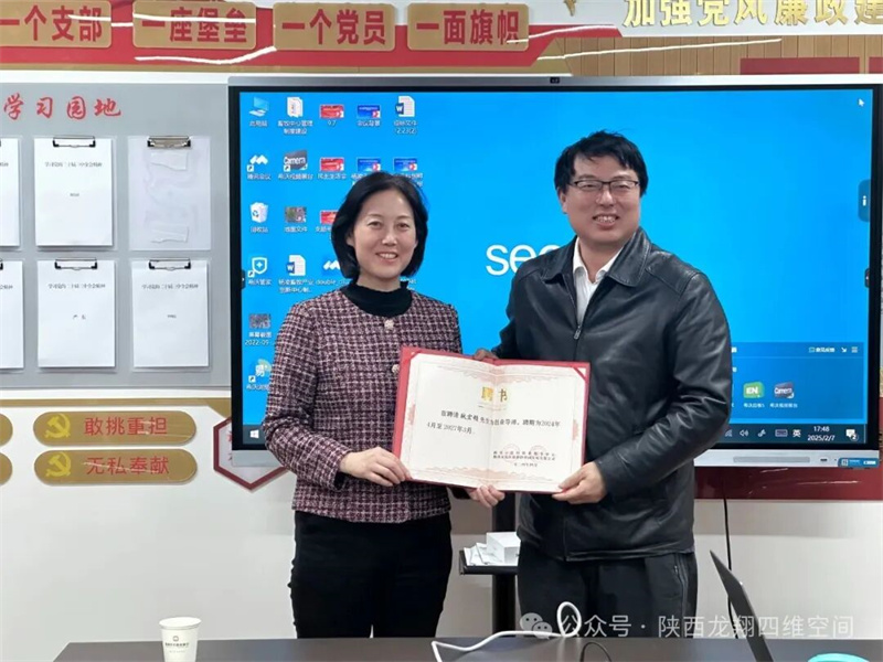 days 06 /24 祝賀陜西龍翔四維空間信息科技有限公司董事長耿宏鎖榮獲雙創平臺創業導師 熱烈祝賀陜西龍翔四維空間信息科技有限公司董事長耿宏鎖榮獲雙創平臺創業導師,聘期為三年。助力雙創平臺發揮創業導師作用,提升創……